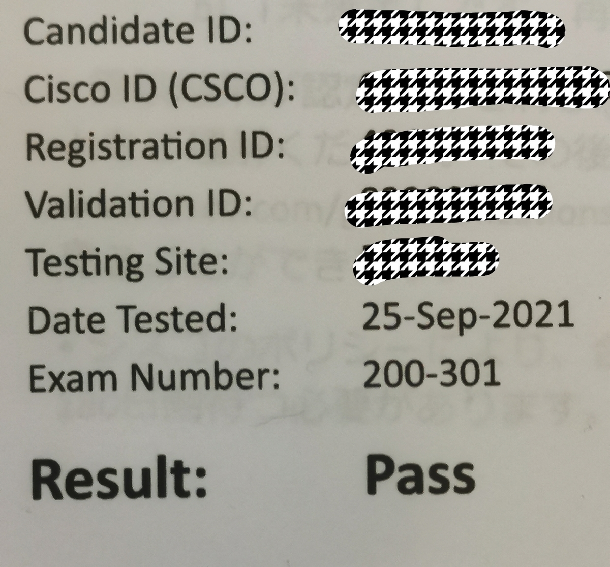 CCNAは受験後にすぐに仮結果が出るので、最後の101問目を解き終わるとき手が震えてました(笑)